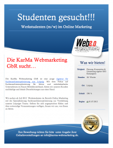 Nun müssen Sie nur noch ein paar grundlegende Dinge beachten. Die Stellenausschreibungen funktionieren immer gut, wenn Sie beispielsweise freie Schreiber für bestimmte Themen suchen. In einem vorigen Artikel hatte ich bereits einmal beschrieben, wie man qualifizierte Texte über Studenten erhält. Auf diese Weise sind die Studenten nicht an einen bestimmten regionalen Punkt gebunden und Sie besitzen die Möglichkeit, deutschlandweit alle Unis anzuschreiben.