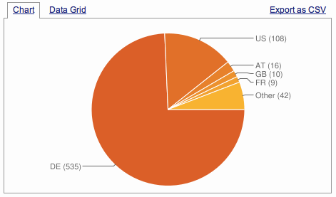 Domain- und IP-Popularität ging ständig nach oben. Zuletzt blieben die Daten eher konstant. Hat man hier aufgehört neue Links zu besorgen weil die Sichtbarkeit bereits fiel und man schon am neuen Design intern werkelte? Ich weiß es nicht, ich kann wieder nur mit Spekulationen dienen. Was die Herkunftsländer der Backlinks angeht kann ich eigentlich nichts negatives feststellen.